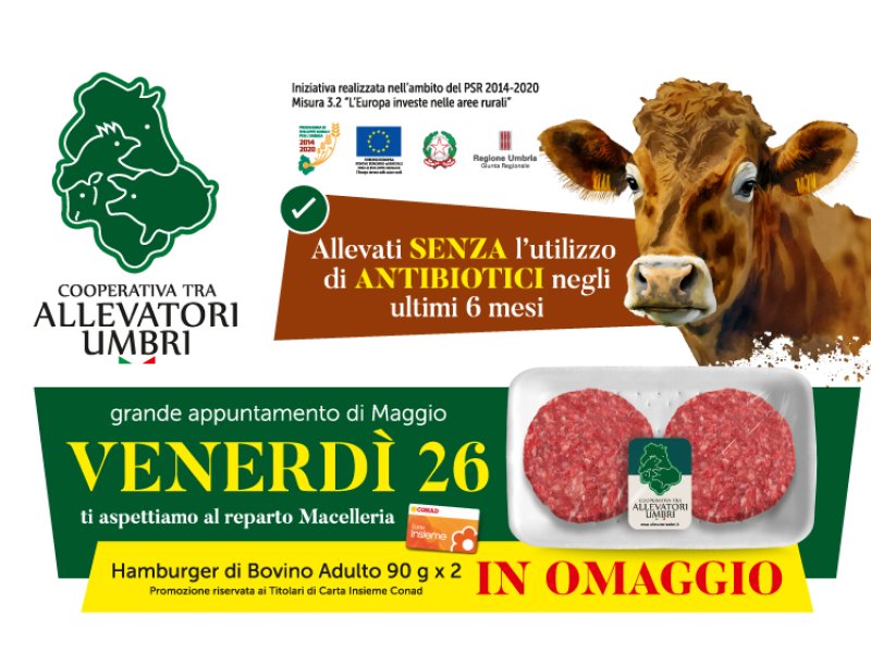 La Cooperativa Allevatori Umbri ti invita VENERDÌ 26 MAGGIO a conoscere le Carni ottenute secondo il Disciplinare, presso i punti vendita Conad, Conad City, Conad Superstore e Spazio Conad dell...