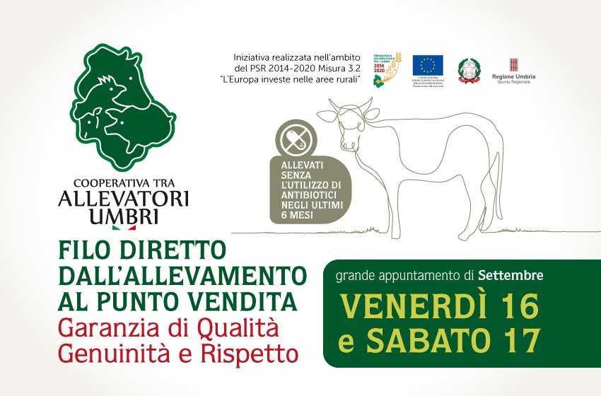 La Cooperativa Allevatori Umbri ti invita VENERDÌ 16 e SABATO 17 SETTEMBRE a conoscere le carni ottenute secondo il Disciplinare, presso i punti vendita Conad, Conad City, Conad Superstore e Spazio Conad dell’Umbria che aderiscono all’iniziativa. La Cooperativa Allevatori Umbri promuove le carni ottenute secondo un Disciplinare di Produzione riconosciuto, basato su un sistema volontario di rintracciabilità ed etichettatura. Con tale certificazione, l’obiettivo delle aziende socie è quello di salvaguardare le produzioni locali attraverso il miglioramento della sostenibilità dell’allevamento, maggiore qualità delle carni e fornire informazioni più chiare ai consumatori.